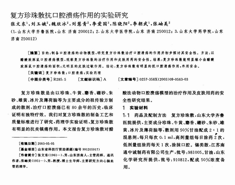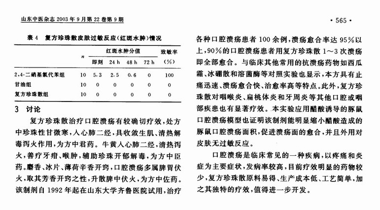 复方珍珠散抗口腔溃疡作用的实验研究