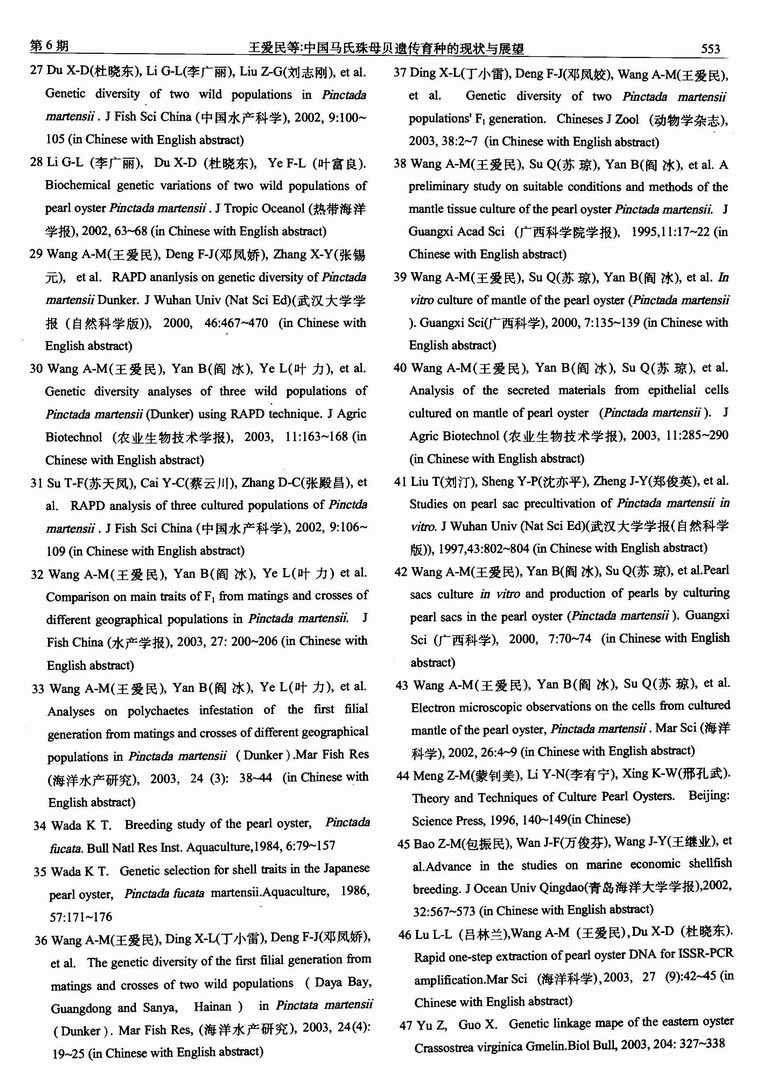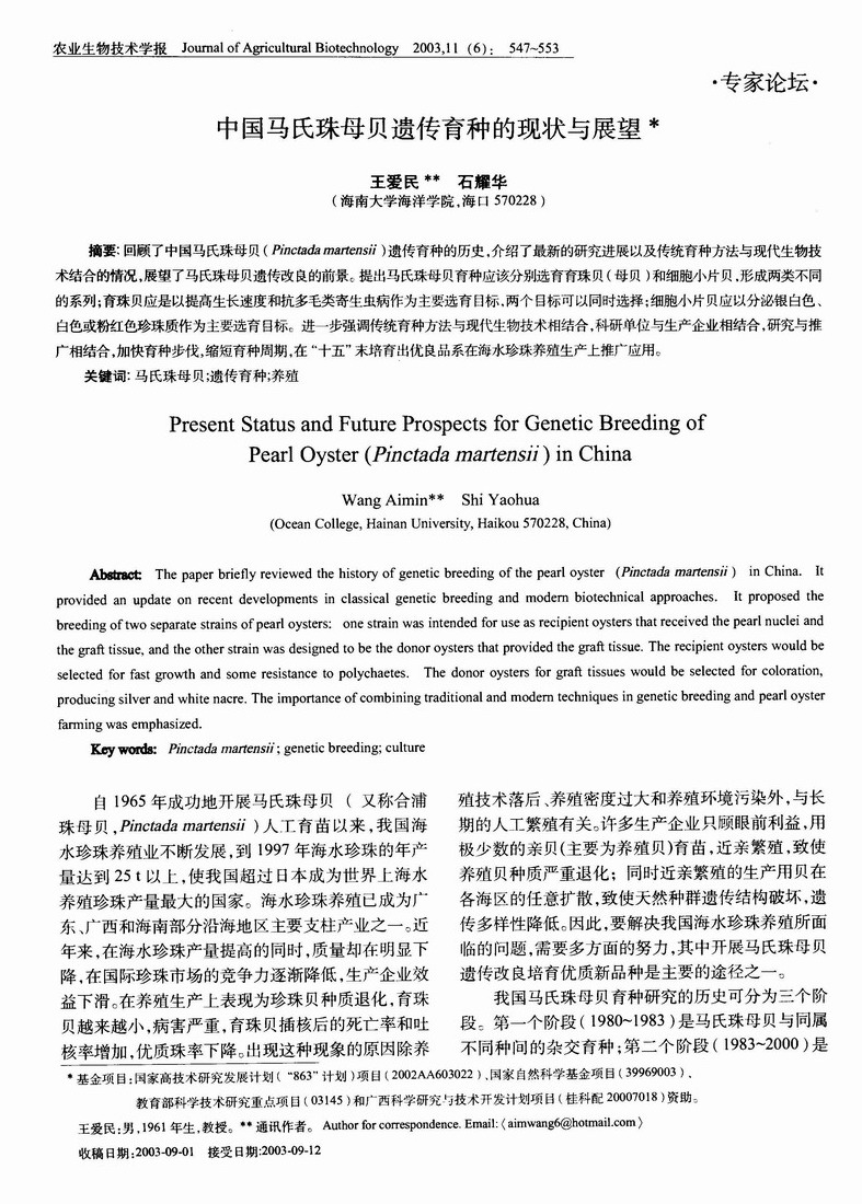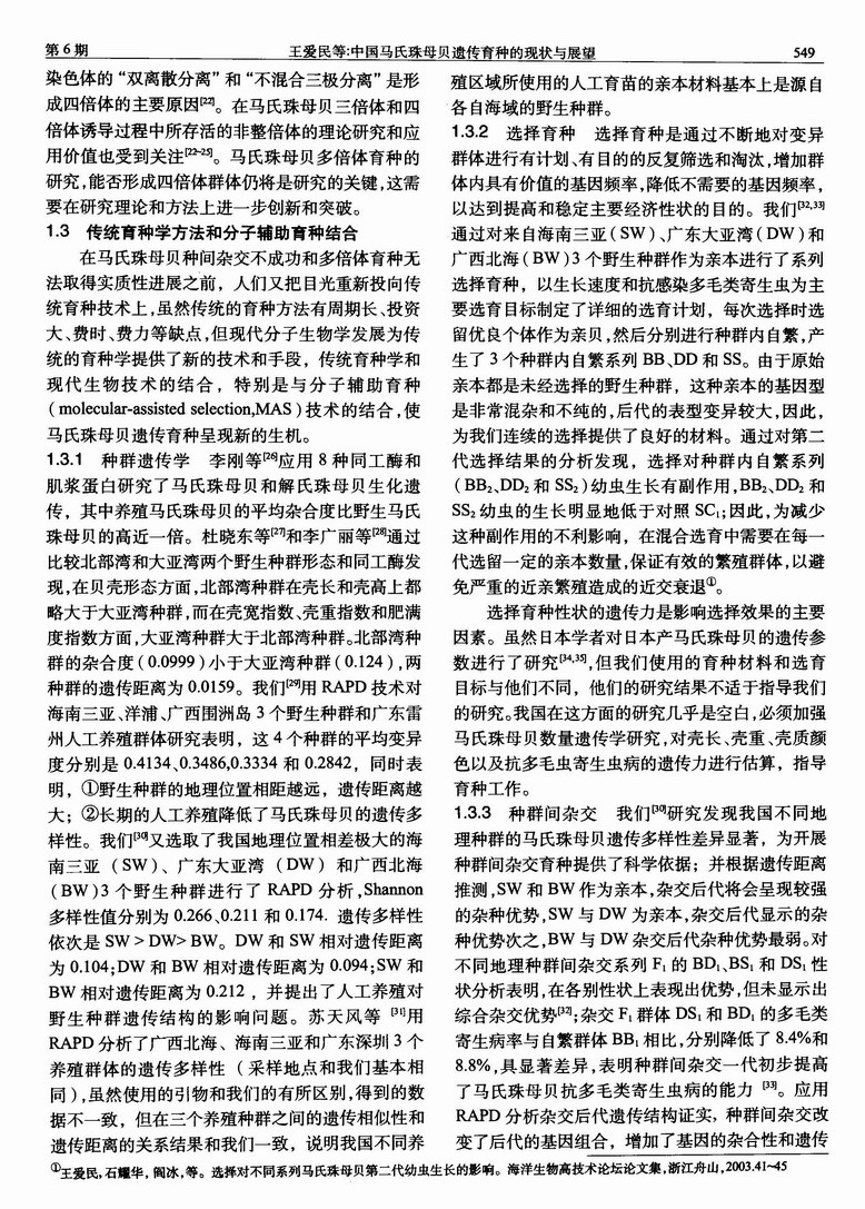 中国马氏珠母贝遗传育种的现状与展望