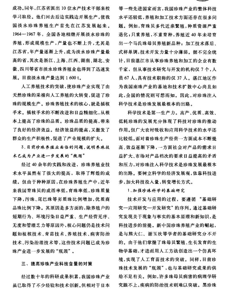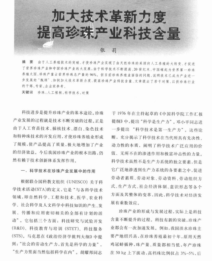 加大技术革新力度 提高珍珠产业科技含量