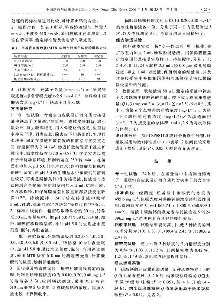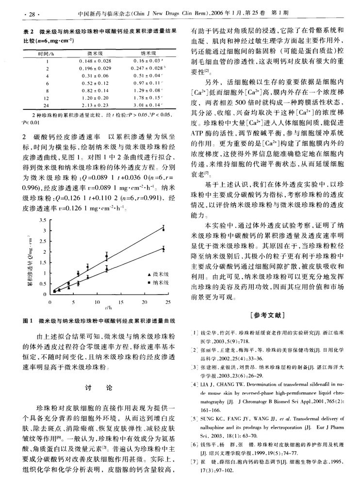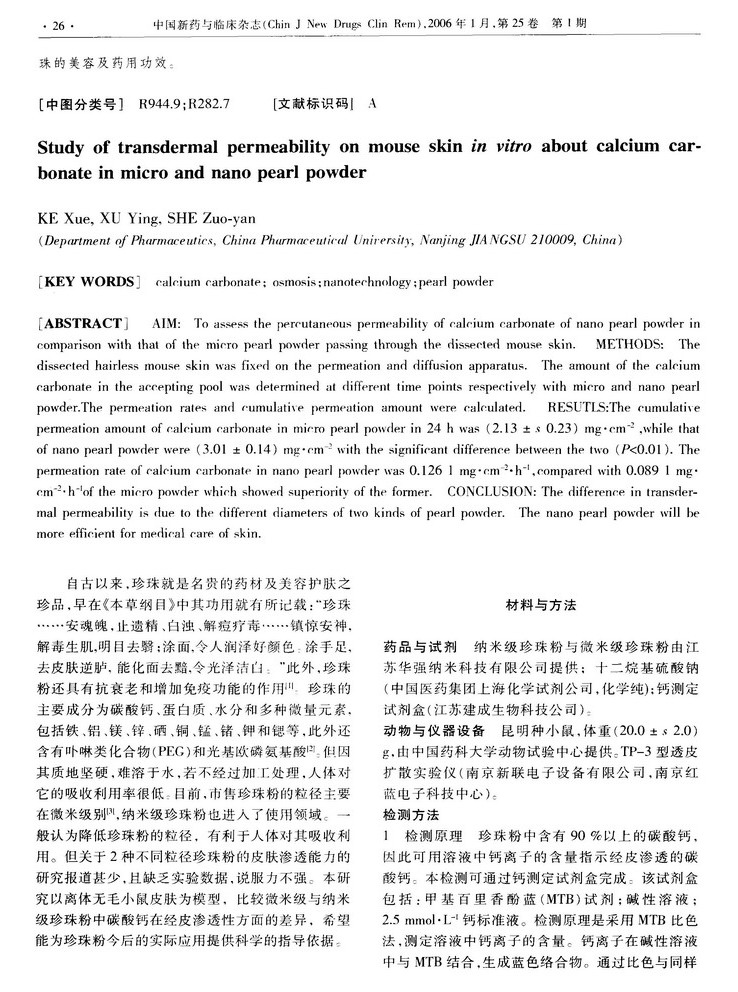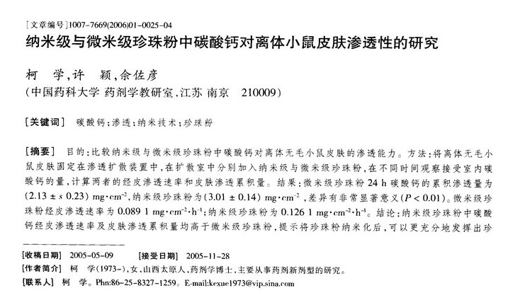 纳米级与微米级珍珠粉中碳酸钙对离体小鼠皮肤渗透性的研究