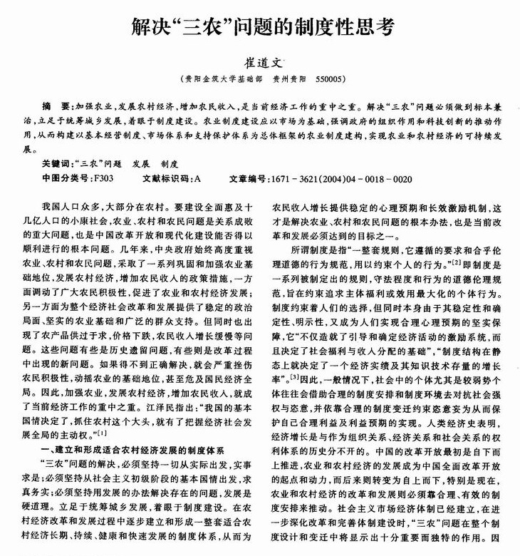 解决“三农”问题的制度性思考