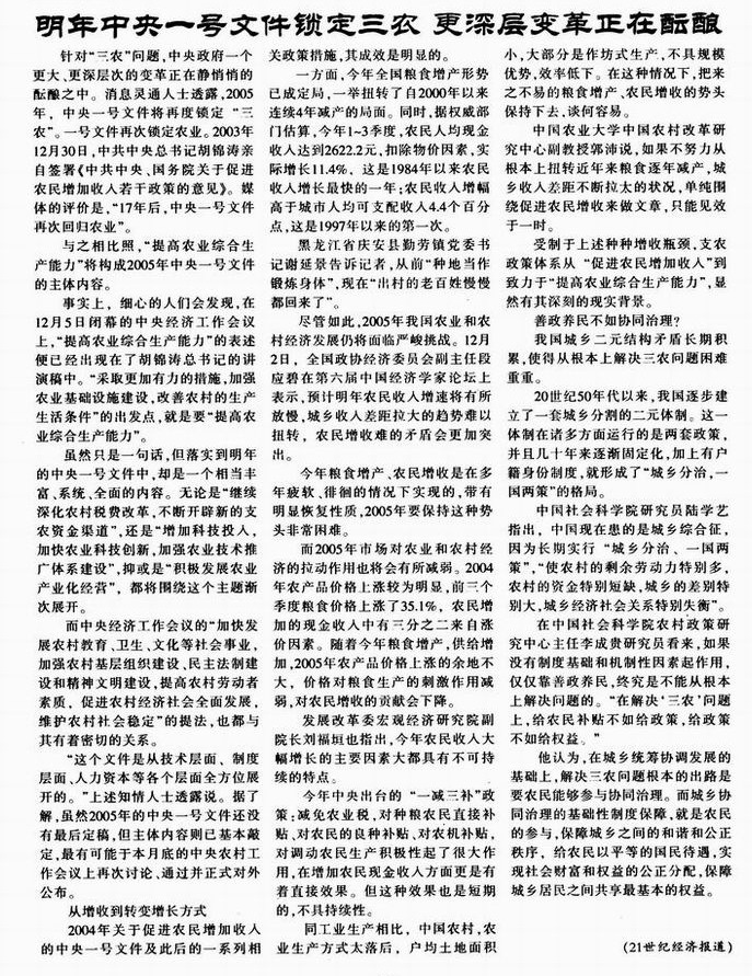 明年中央一号文件锁定三农 更深层变革正在酝酿