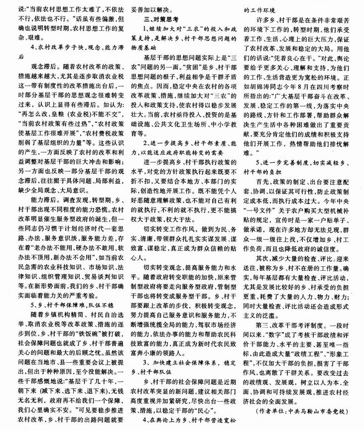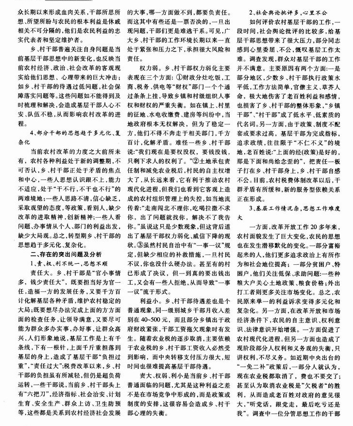 转型期乡村干部思想状况的调查与思考