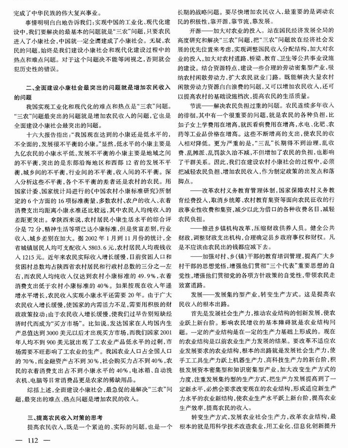 增加农民收入:全面建设小康社会最突出的问题
