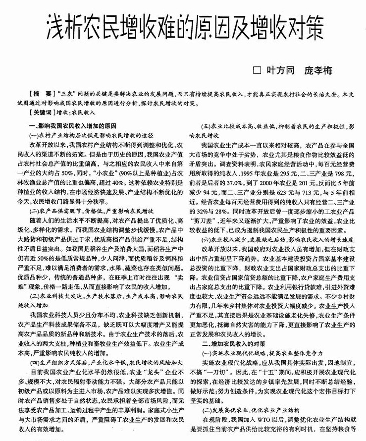 浅析农民增收难的原因及增收对策