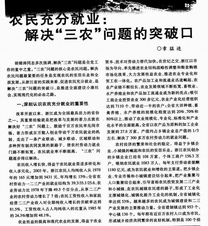农民充分就业:解决“三农”问题的突破口