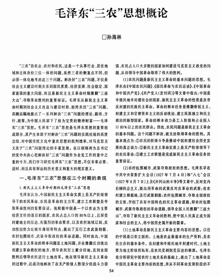 毛泽东“三农”思想概论