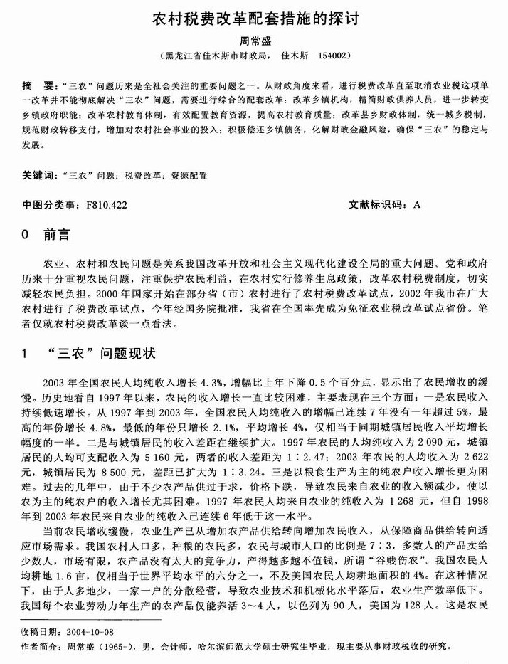 农村税费改革配套措施的探讨
