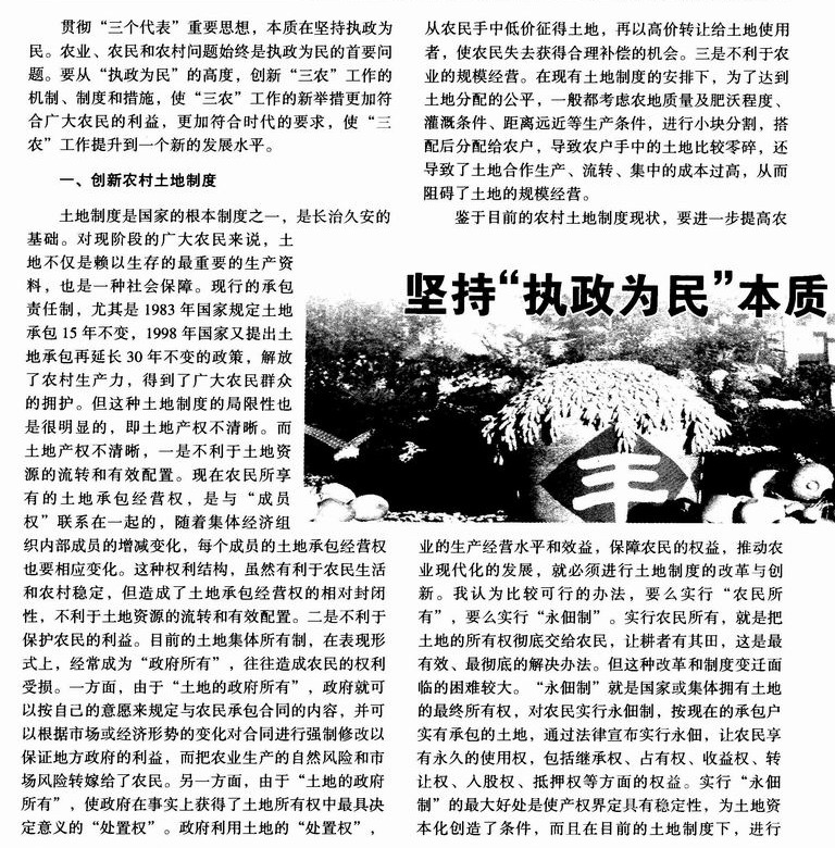 坚持“执政为民”本质 推进“三农”工作创新