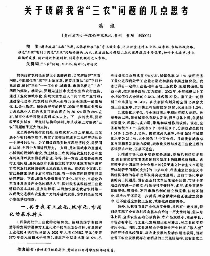 关于破解我省“三农”问题的几点思考