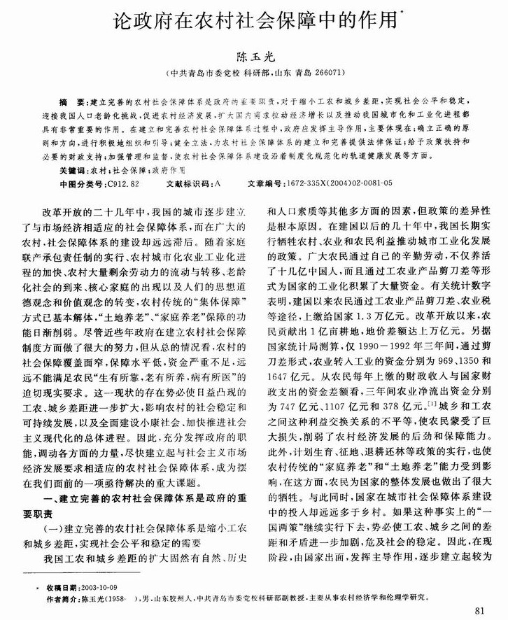 论政府在农村社会保障中的作用