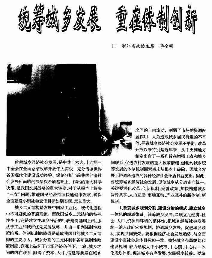 统筹城乡发展 重在体制创新