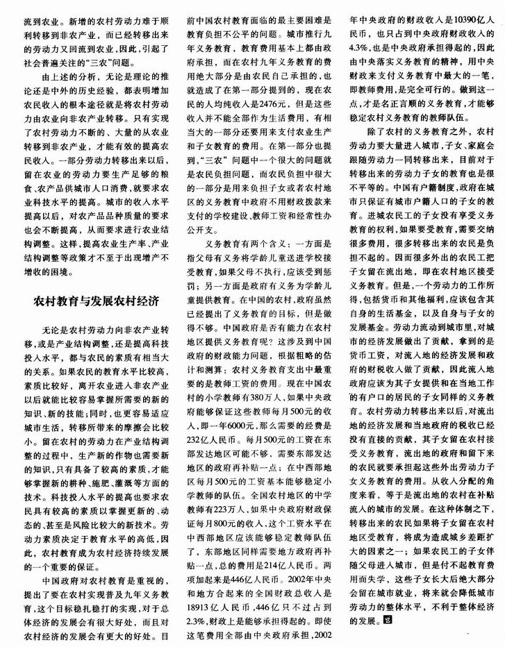 解决三农问题的关键在于发展农村教育、转移农村人口