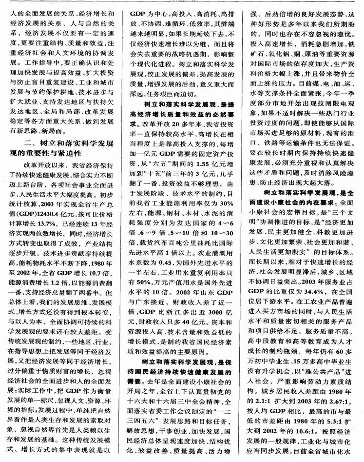 树立和落实科学发展观促进国民经济持续快速协调健康发展