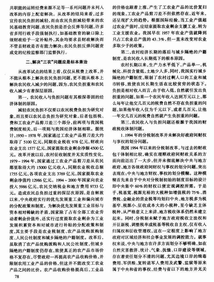 农村税费改革应标本兼治