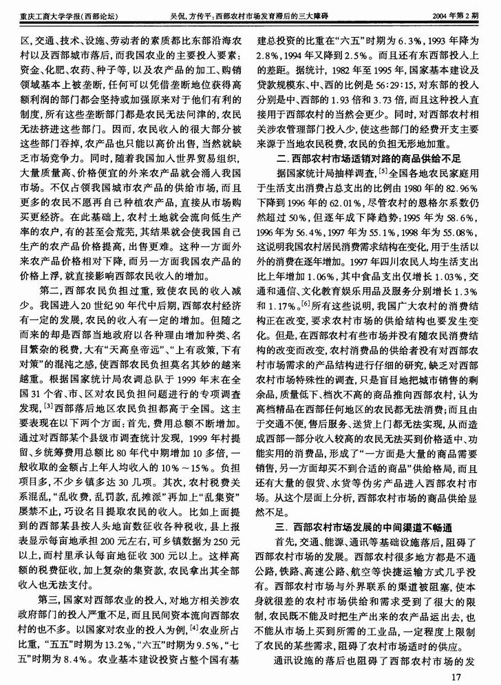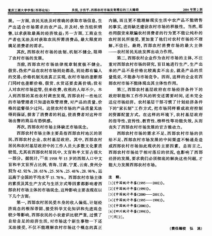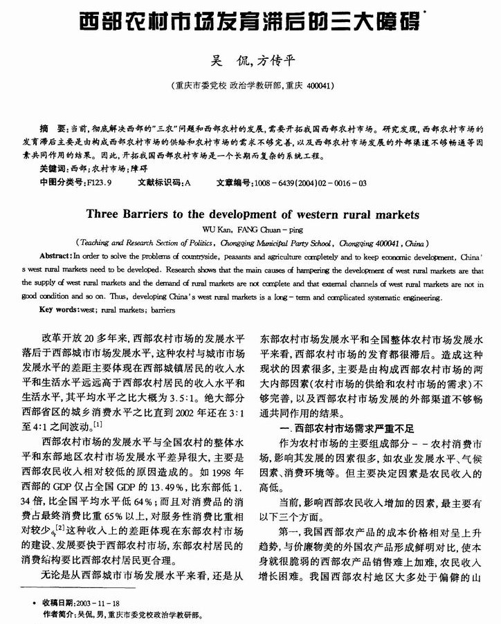 西部地区农村市场发育滞后的三大障碍