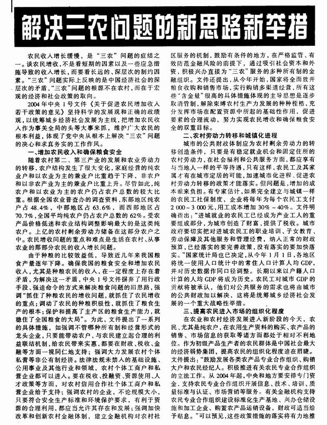 解决三农问题的新思路新举措
