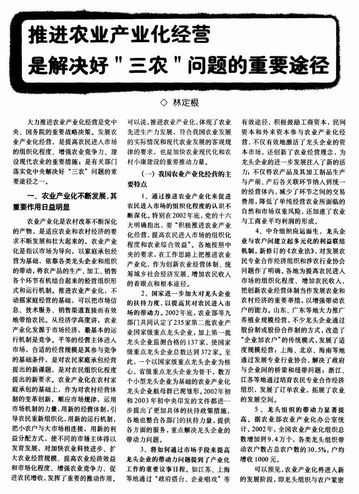 推进农业产业化经营是解决好“三农”问题的重要途径