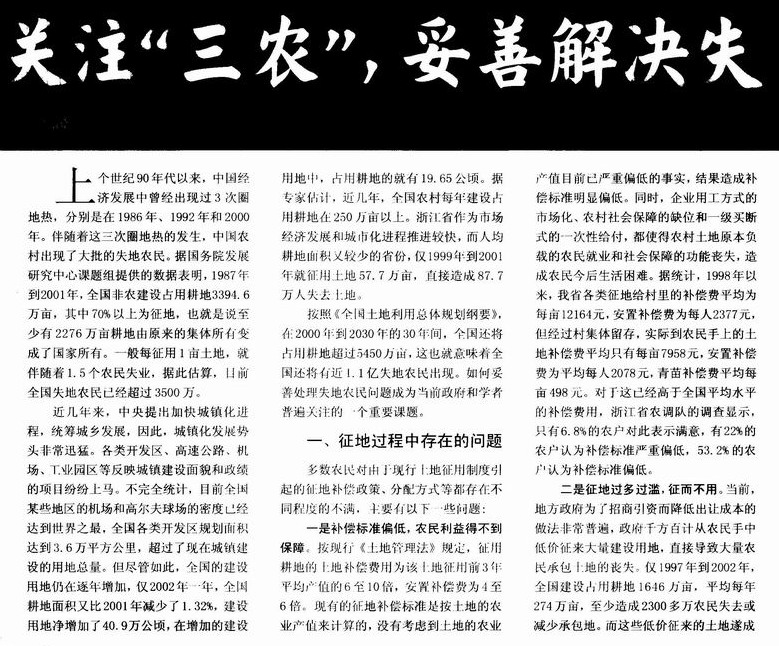 关注“三农”,妥善解决失地农民问题