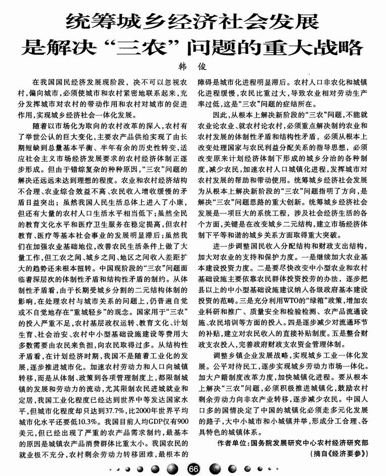 统筹城乡经济社会发展是解决“三农”问题的重大战略