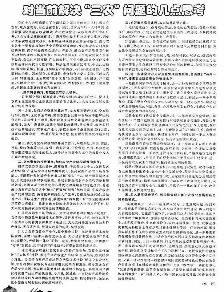 对当前解决“三农”问题的几点思考