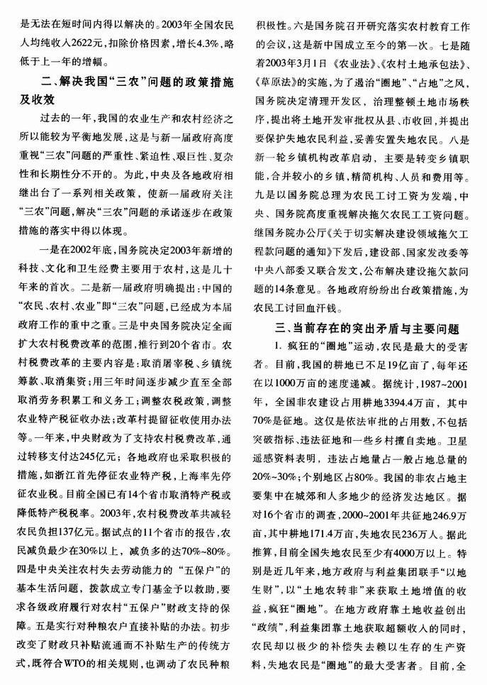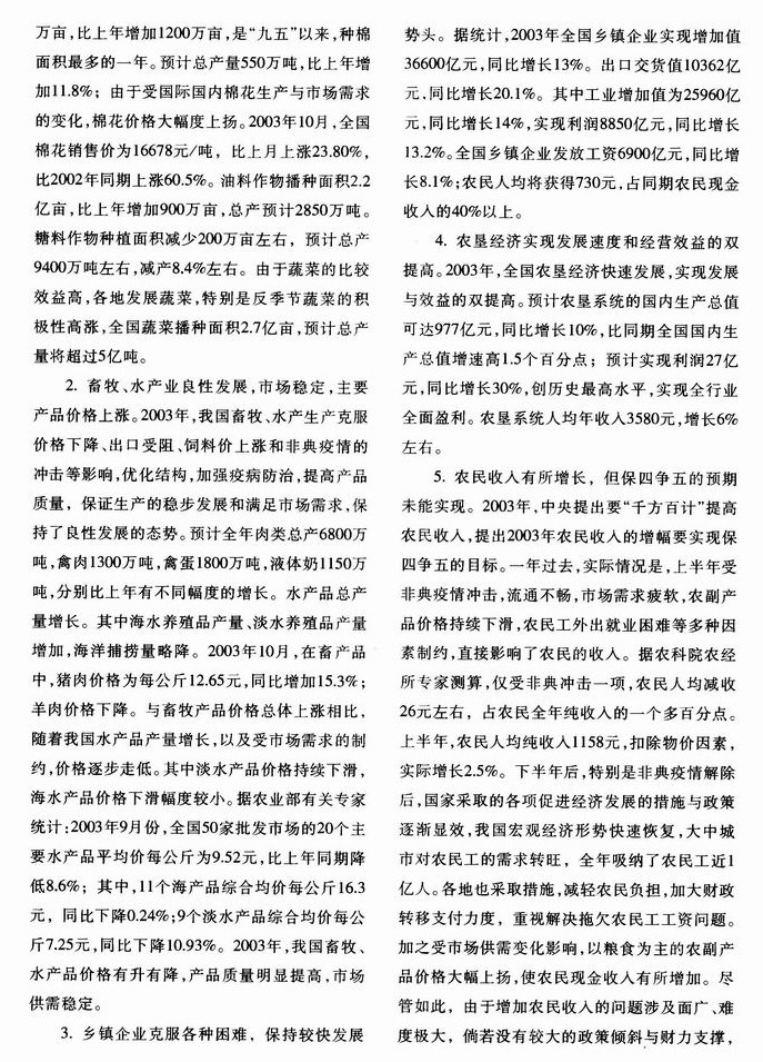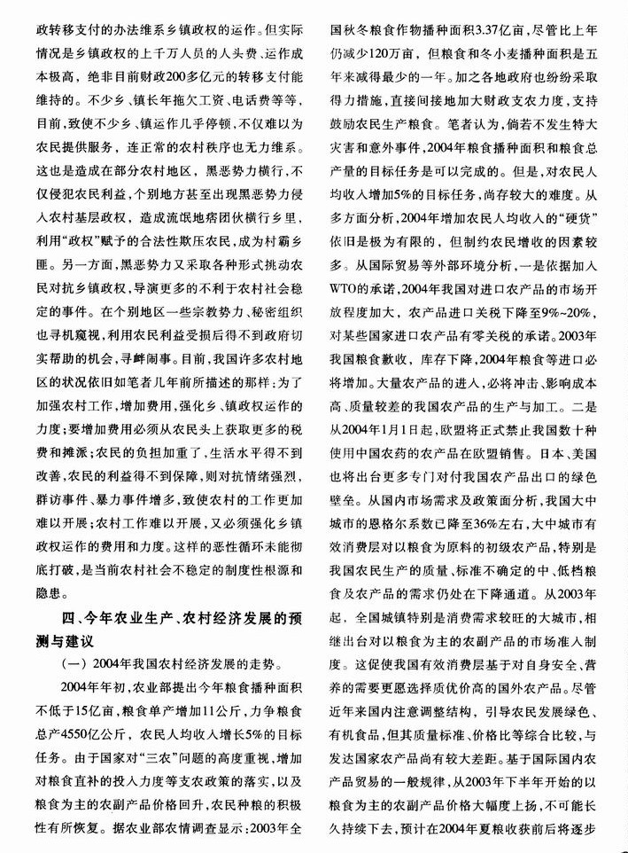 我国农村经济发展的走势及对城乡统筹解决“三农”问题的建议