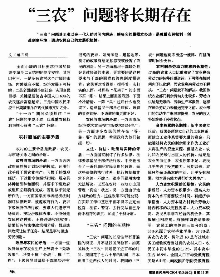 “三农”问题将长期存在