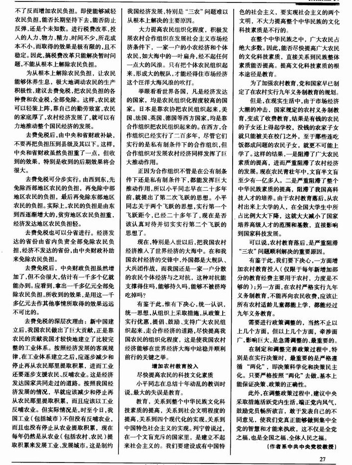 解决好“三农”问题需调整好政策