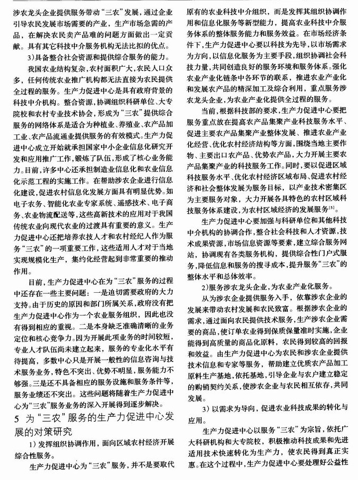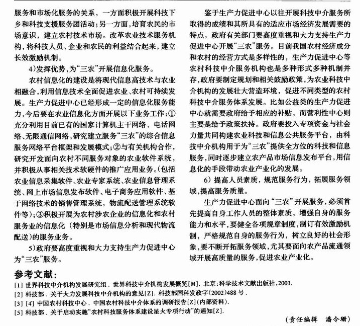 为“三农”服务的生产力促进中心发展研究