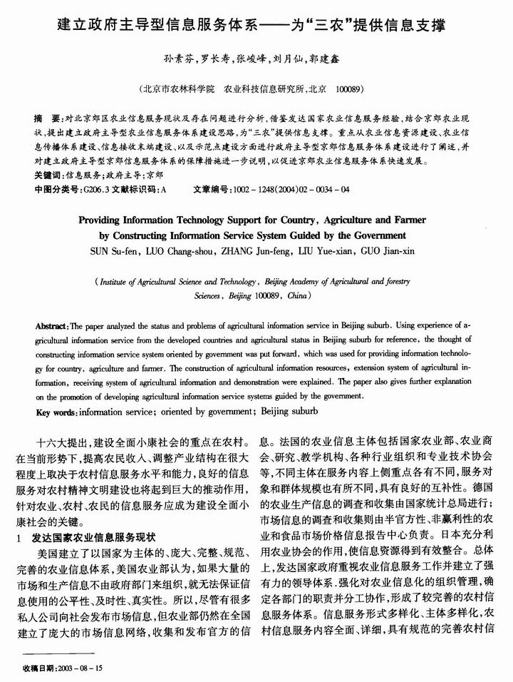 建立政府主导型信息服务体系——为“三农”提供信息支撑