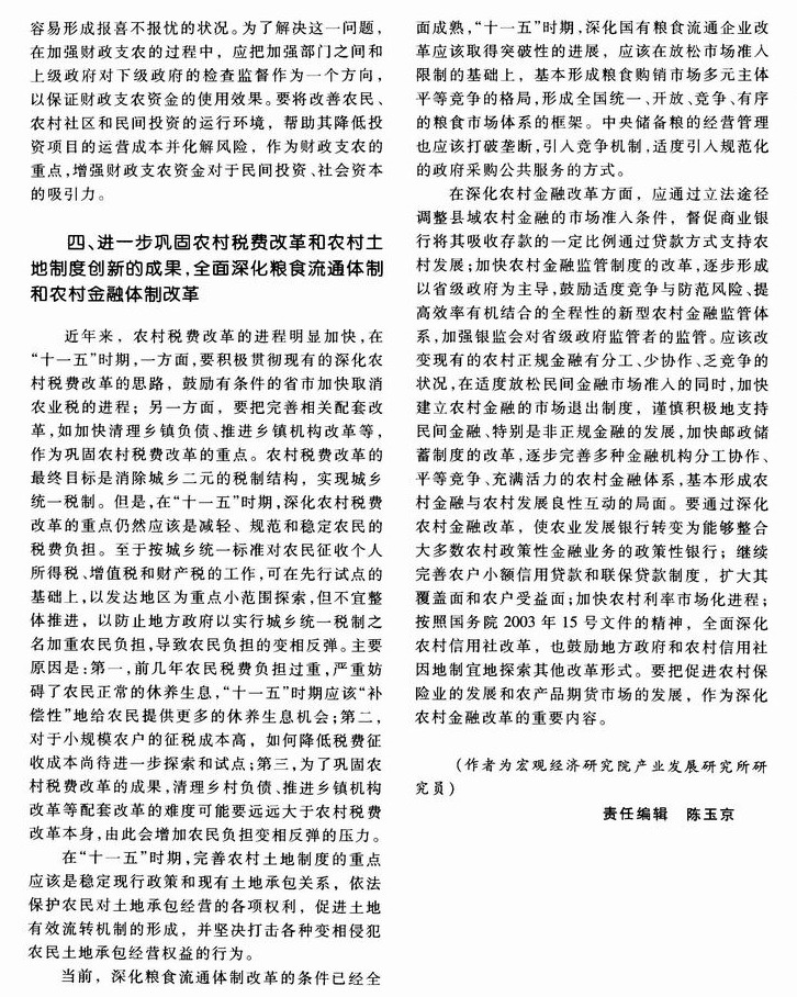 多予、少取、放活、协调——对“十一五”时期完善农业和农村支持政策的几点建议