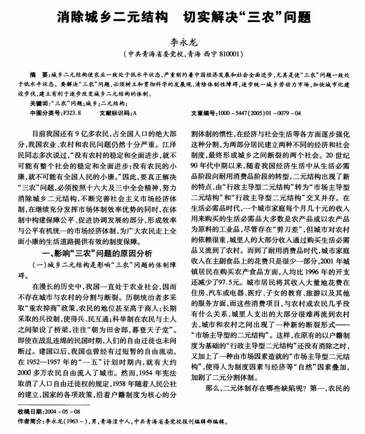 消除城乡二元结构 切实解决“三农”问题