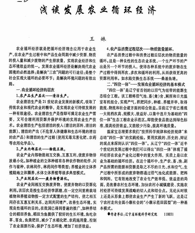 浅谈发展农业循环经济