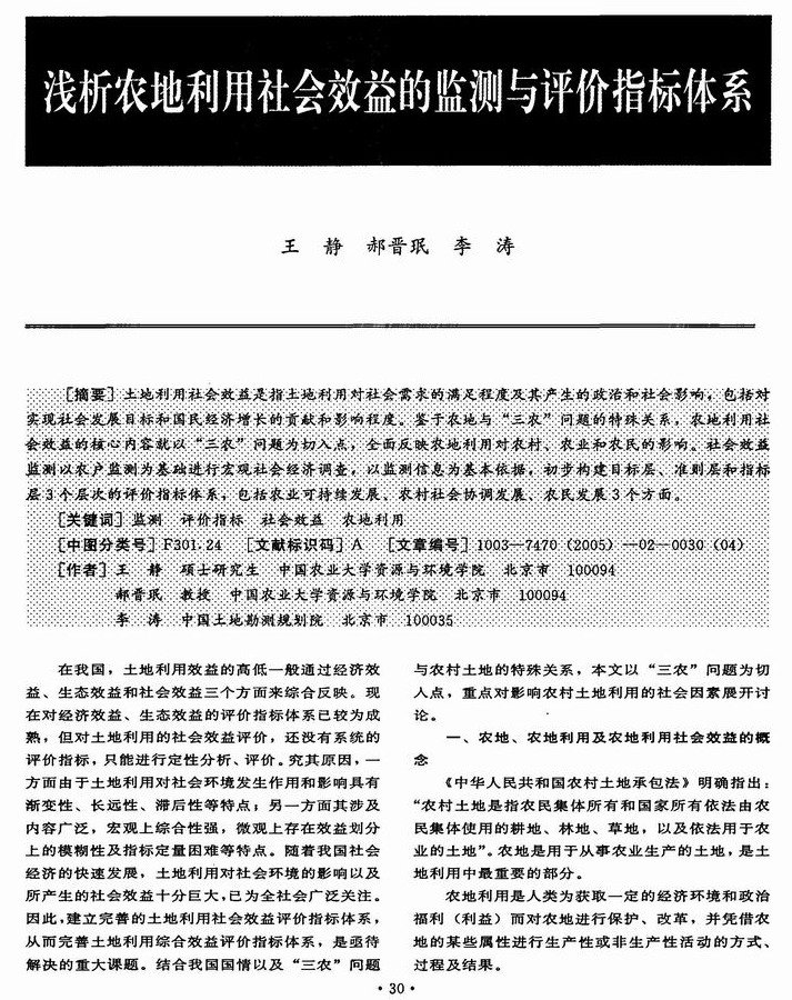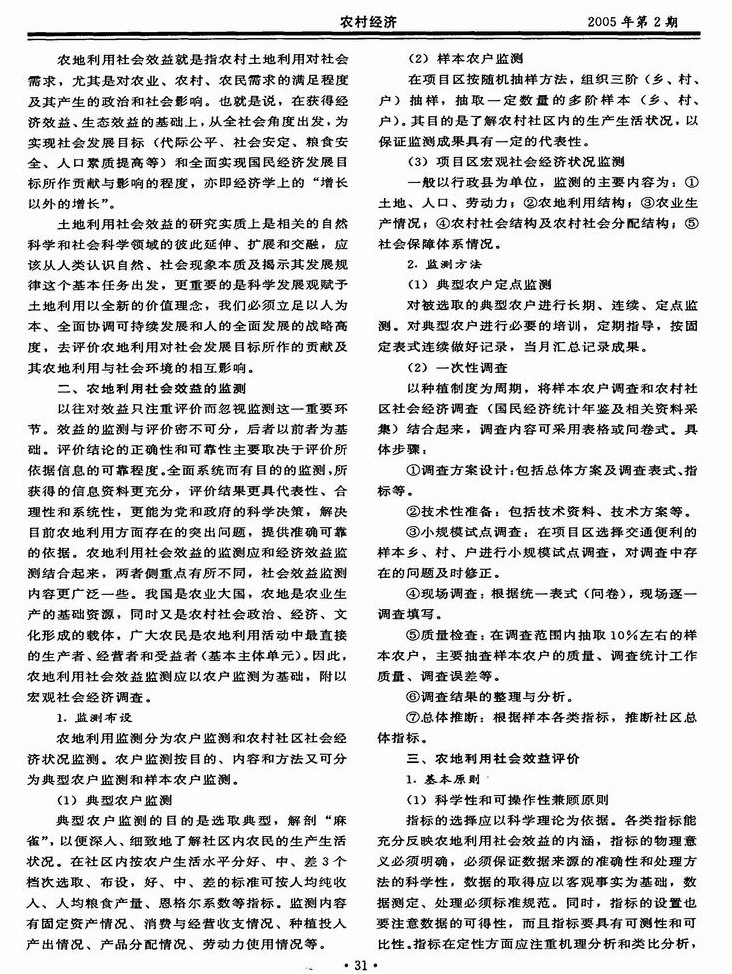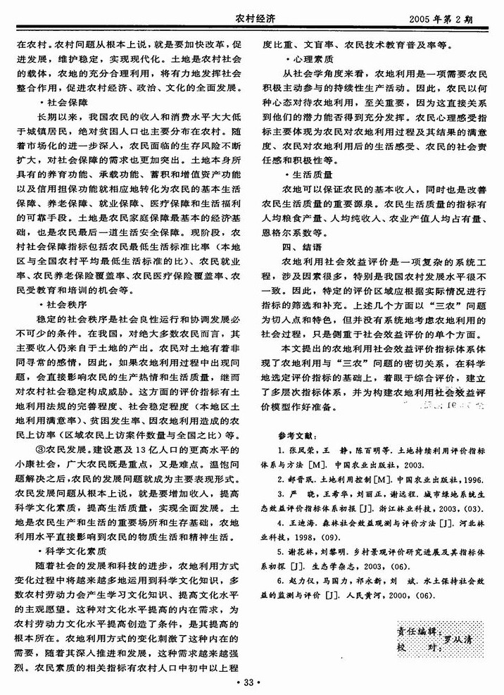 浅析农地利用社会效益的监测与评价指标体系