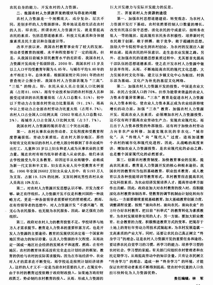 开发农村人力资源是解决“三农”问题的关键