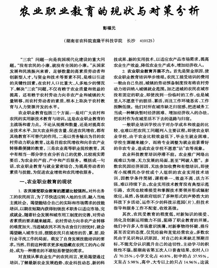 农业职业教育的现状与对策分析