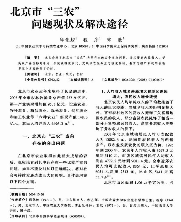 北京市“三农”问题现状及解决途径