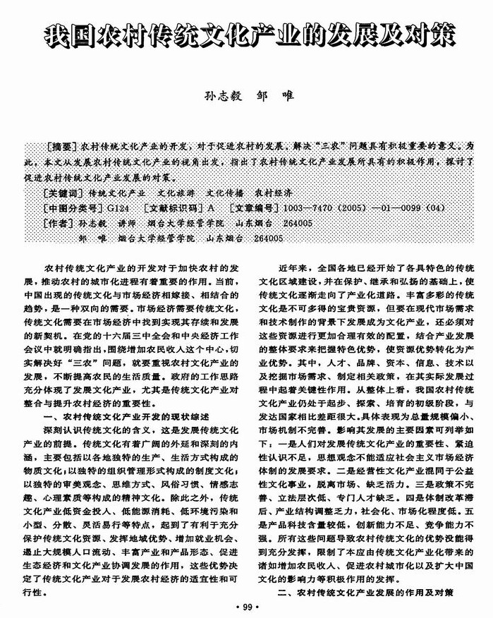 我国农村传统文化产业的发展及对策