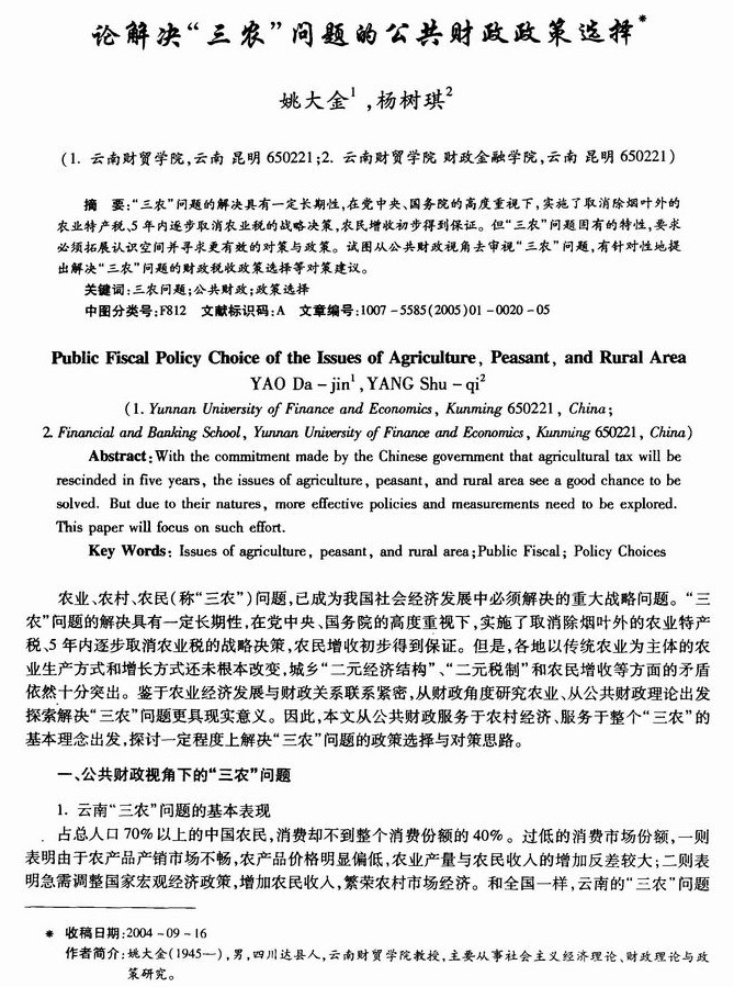 论解决“三农”问题的公共财政政策选择