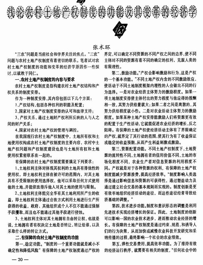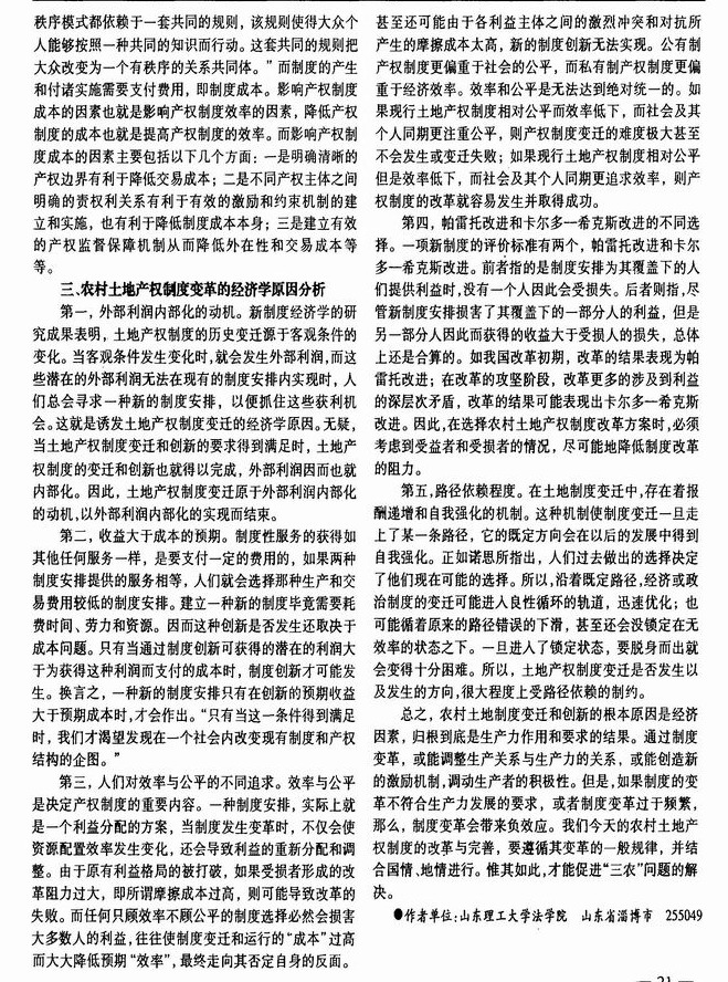 浅论农村土地产权制度的功能及其变革的经济学原因