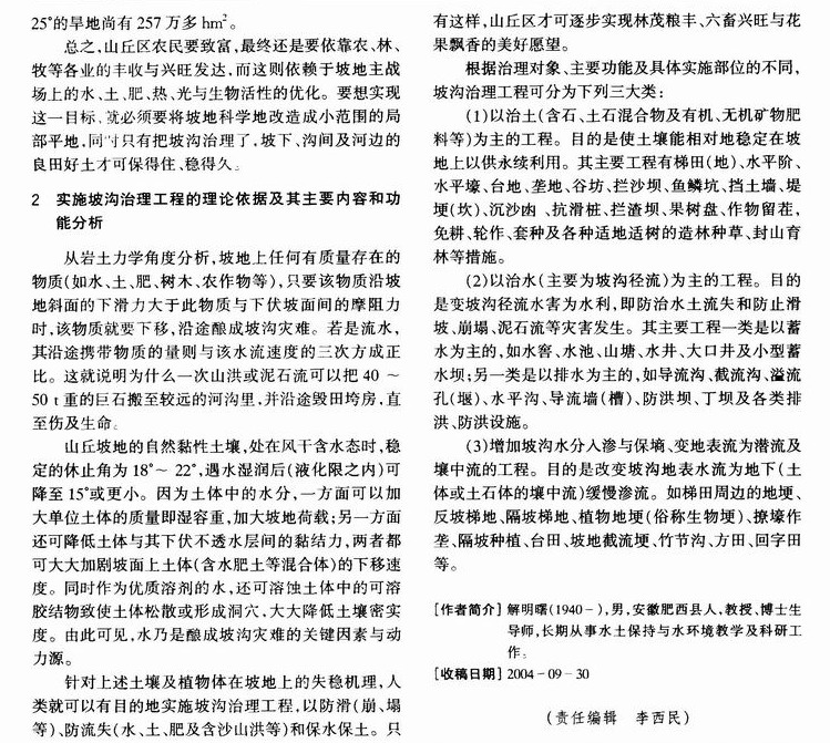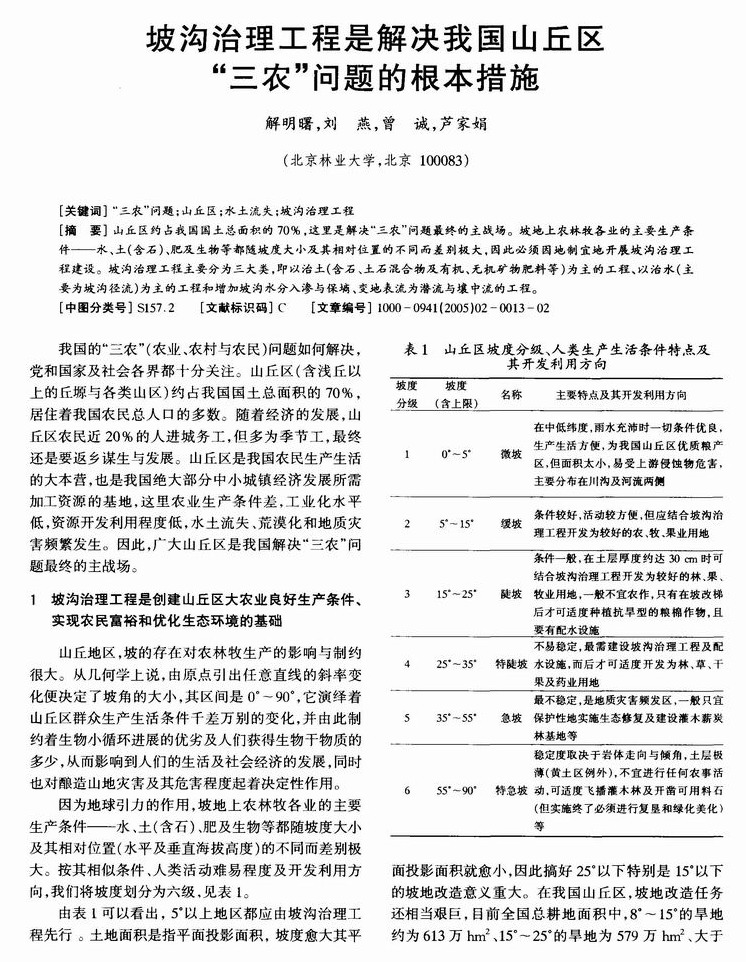 坡沟治理工程是解决我国山丘区“三农”问题的根本措施