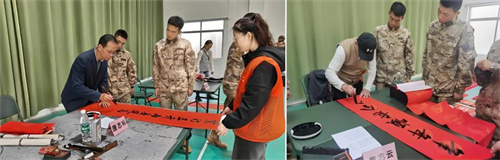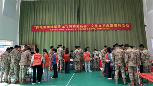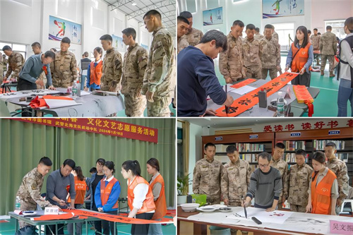军民同心谱新篇,双拥之花开珠城。春节临近,为丰富军营的业余文化生活,促进军民融合,1月19日,北海市图书馆文化志愿者到驻市某武警部队,开展“挥毫泼墨进军营 龙飞凤舞迎新春”文化文艺志愿服务进军营活动,把浓浓的年味和新春的祝福送到部队官兵手中。