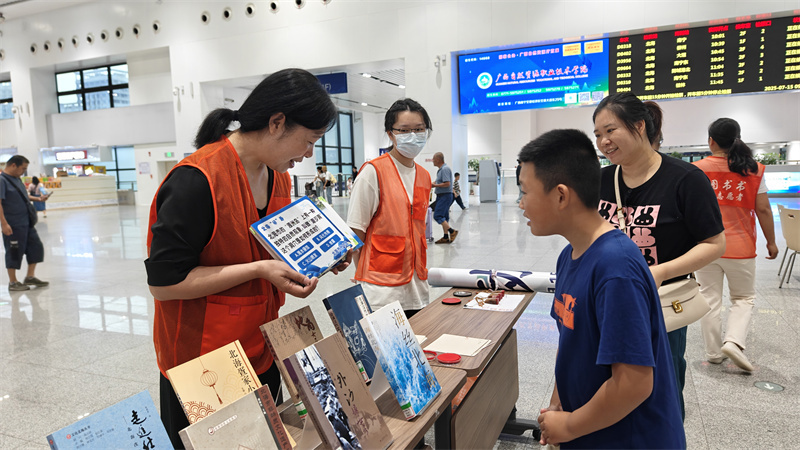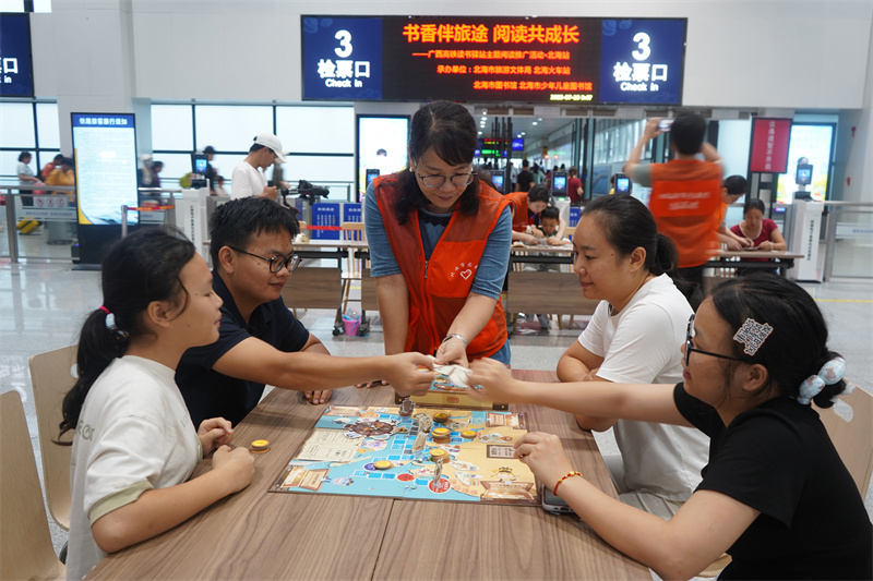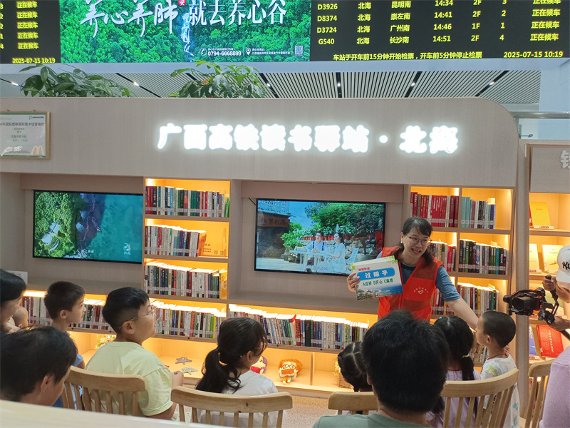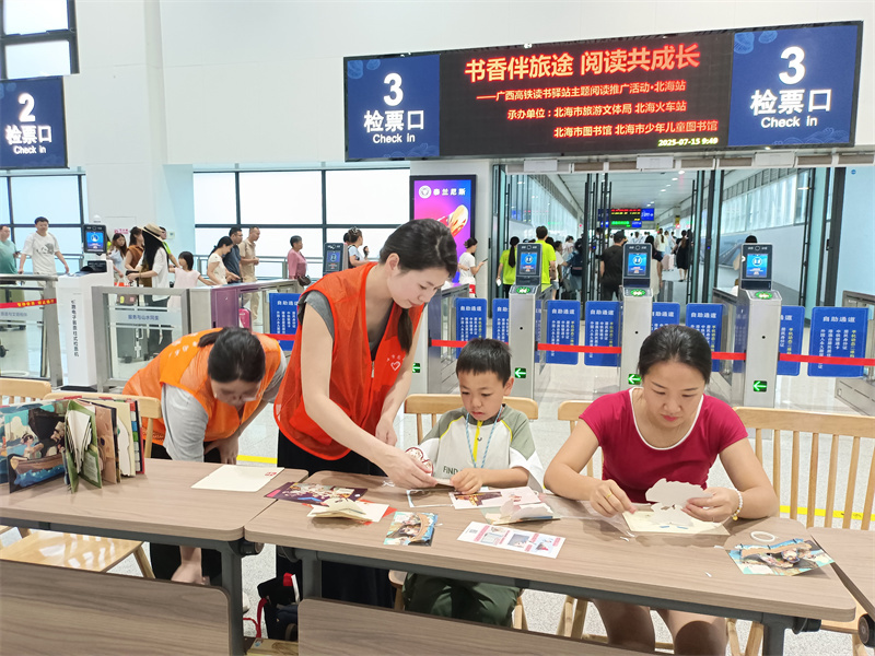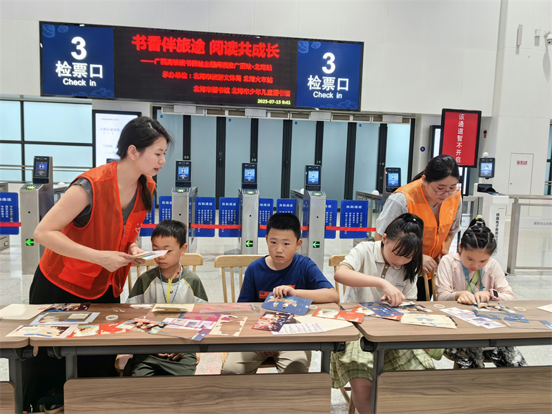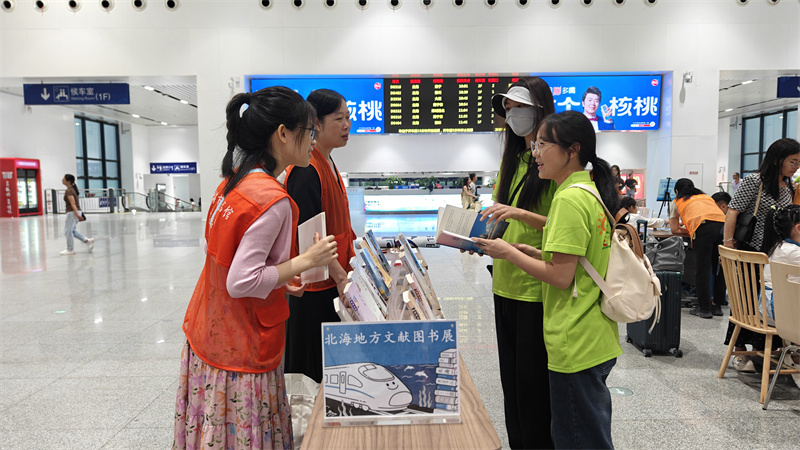 为让广大旅客在高铁旅途的间隙,能够深切感受海上丝绸之路文化的魅力,领略北海独特的文化底蕴。7月15日,北海市图书馆联合北海火车站、北海市少年儿童图书馆在高铁读书驿站开展了一系列精彩活动,为往来旅客带来了一段充实而温暖的停留时光。